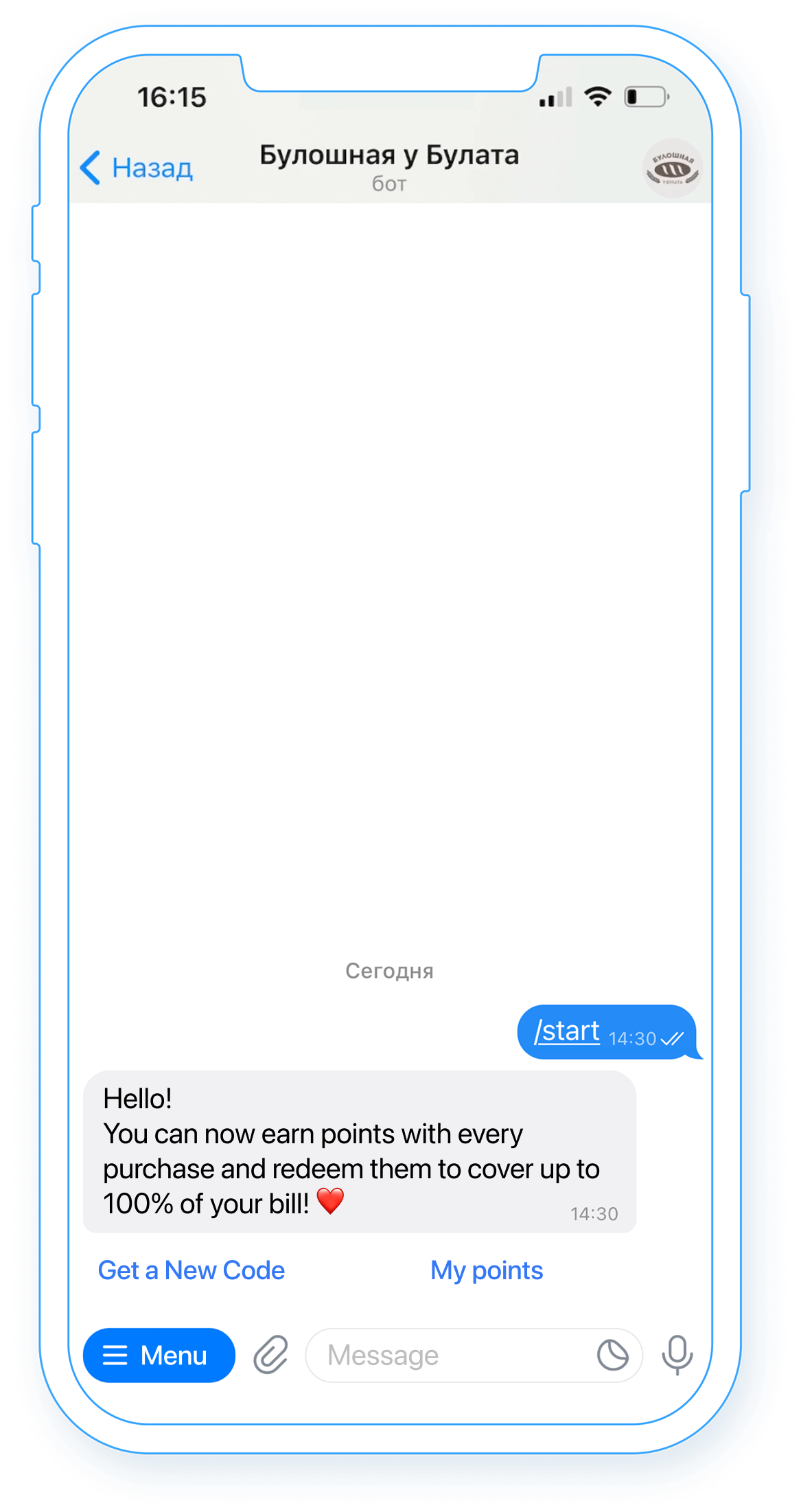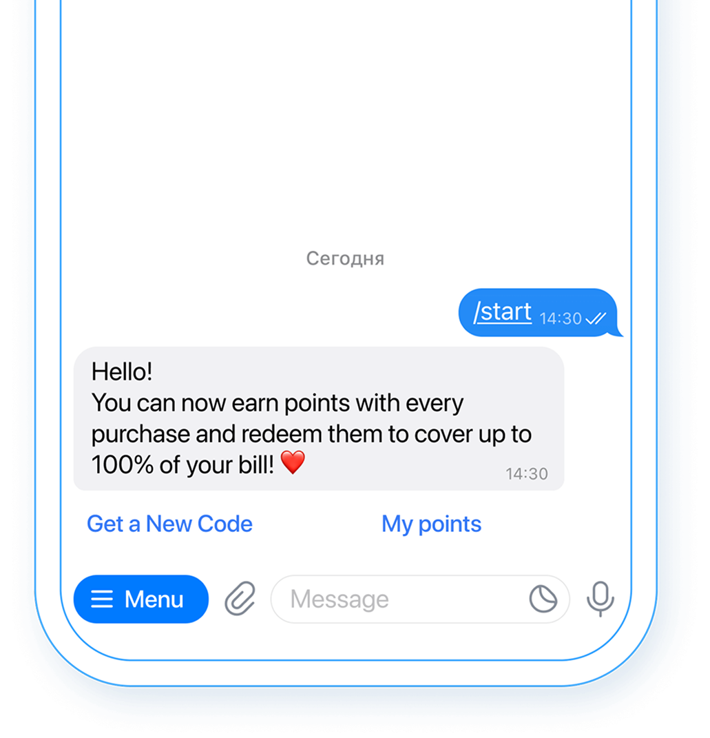 UDS Telegram Bot is the easiest way for your customers to earn and redeem points.